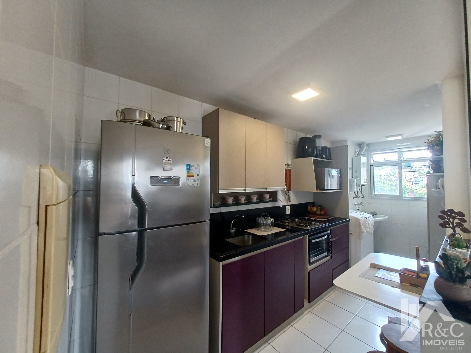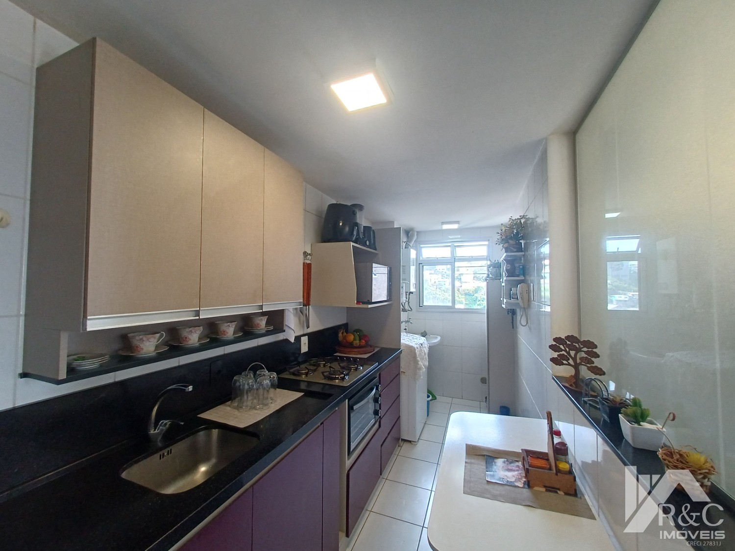 A cozinha é o espaço ideal para os amantes da culinária prepararem deliciosas refeições enquanto apreciam a vista panorâmica da cidade. O apartamento também dispõe de uma aconchegante área de serviço, garantindo praticidade no dia a dia.